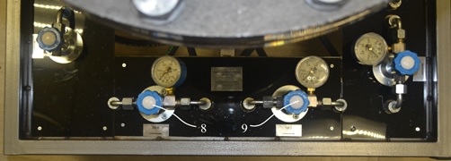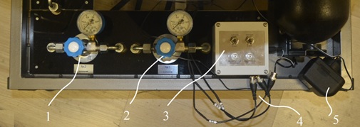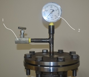 А) 1- газовый клапан сброса пробного газа; 2 – манометр показывающий давление в системе до газовых клапанов.