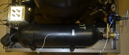 Формирование течей пробным газом осуществляется с использованием баллона с пробным газом Азотом (Рис.2Б), подача которого в газовые магистрали осуществляется через понижающий редуктор с использованием общего газового клапана от баллона (Рис. 2Г). Подача иного пробного газа (удовлетворяющего требованиям СДОС 07-2012) осуществляется через общий газовый клапан от компрессора (Рис.2Г).