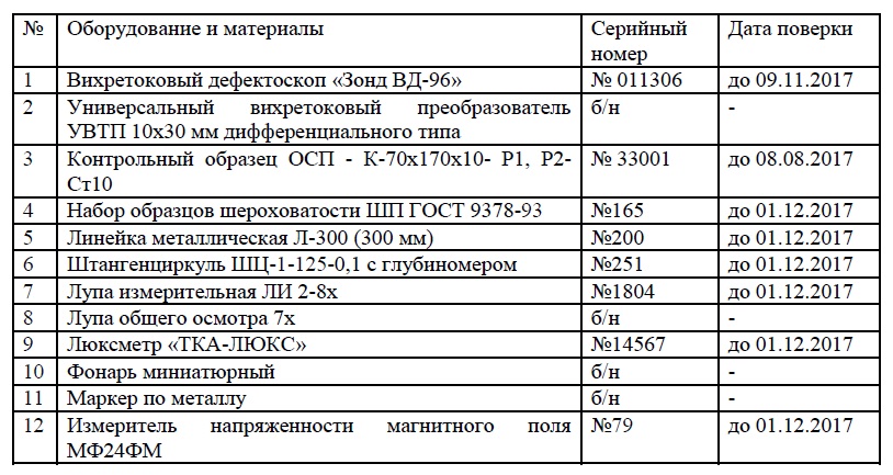 | 1 | ВТ (вихретоковый) | Поверхностные, подповерхностные |