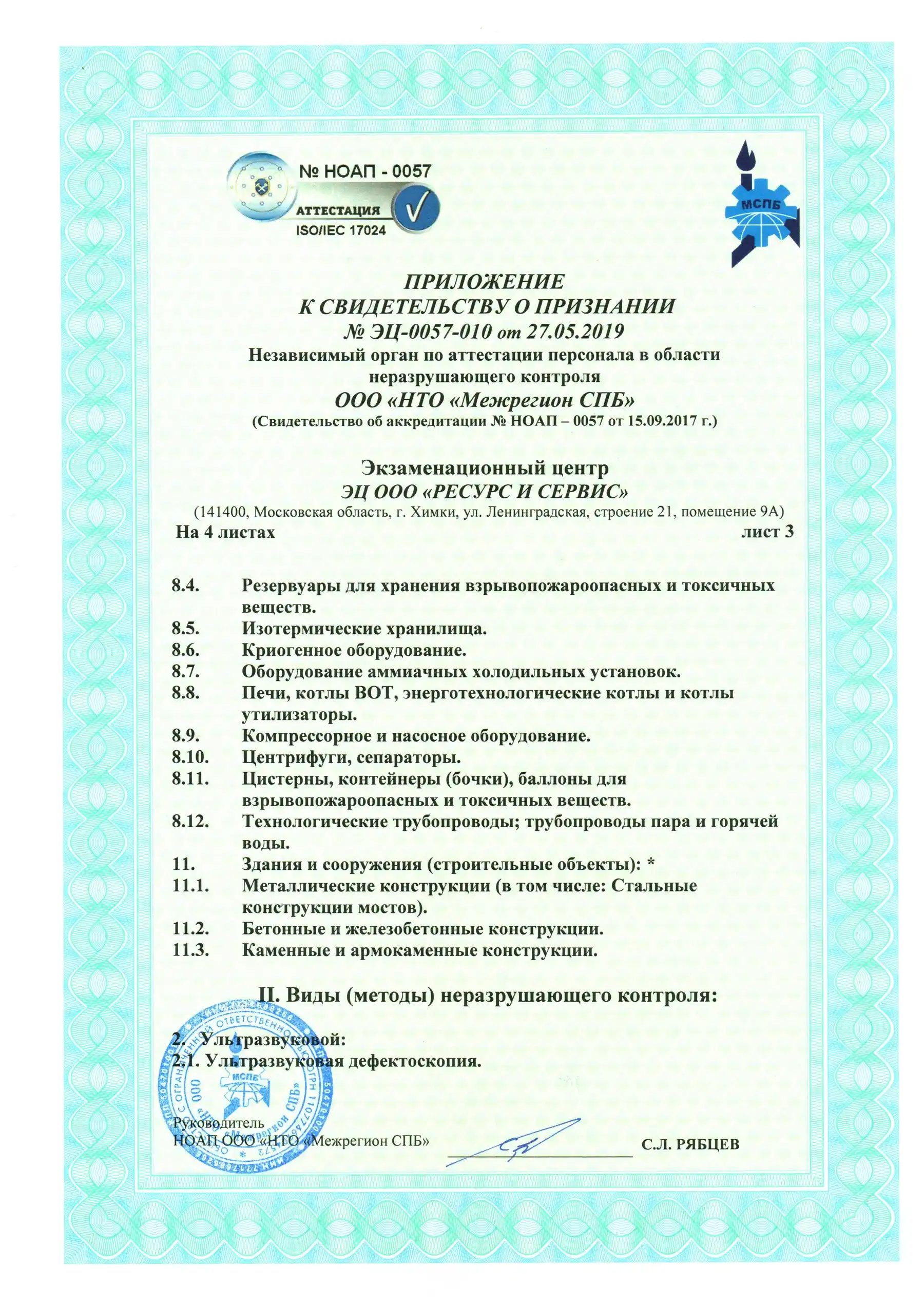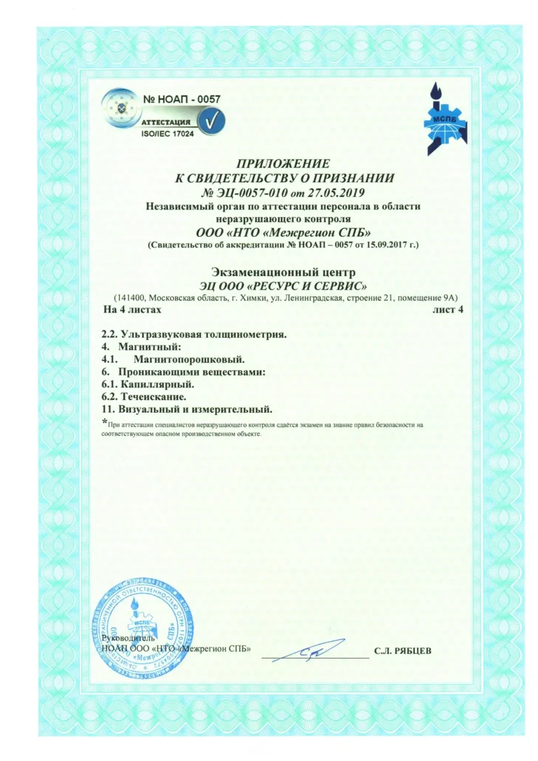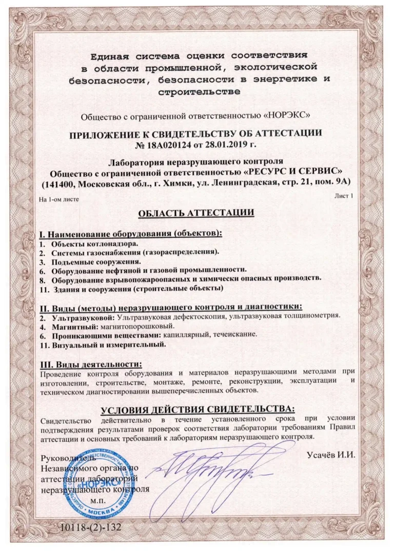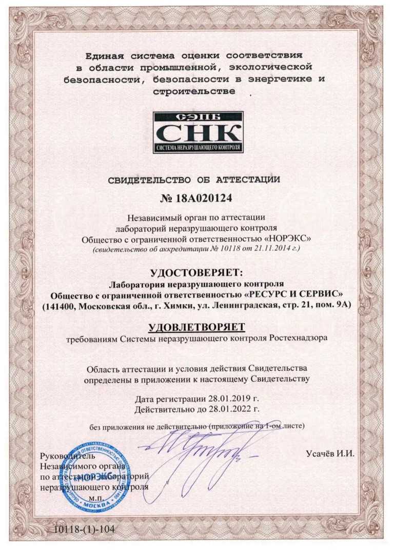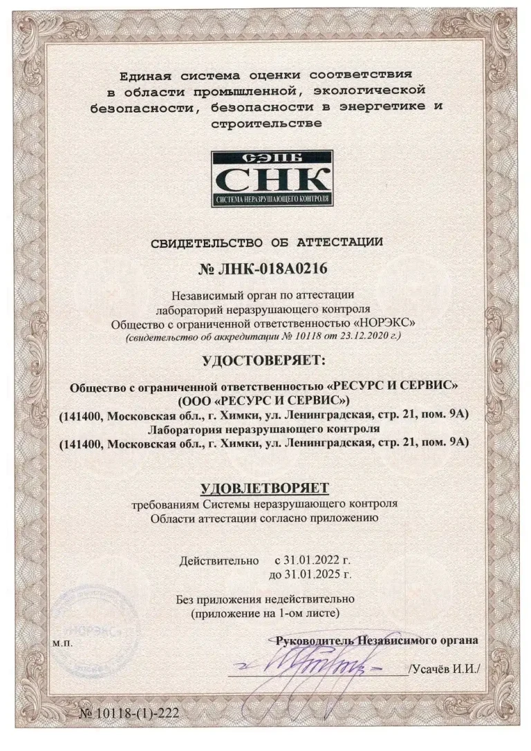 Компания «РЕСУРС И СЕРВИС» занимается разработкой, производством и последующей поддержкой технологий неразрушающего контроля (НК), от разработки средств НК, учебных и методических пособий, до реализации на производственных предприятиях полного цикла методик НК. Многолетний опыт и сотрудничество с ведущими специалистами отрасли помогают нам добиваться максимального эффекта в решении самых сложных задач, в том числе в рамках интегрированных систем контроля и безопасности (ИСБ)