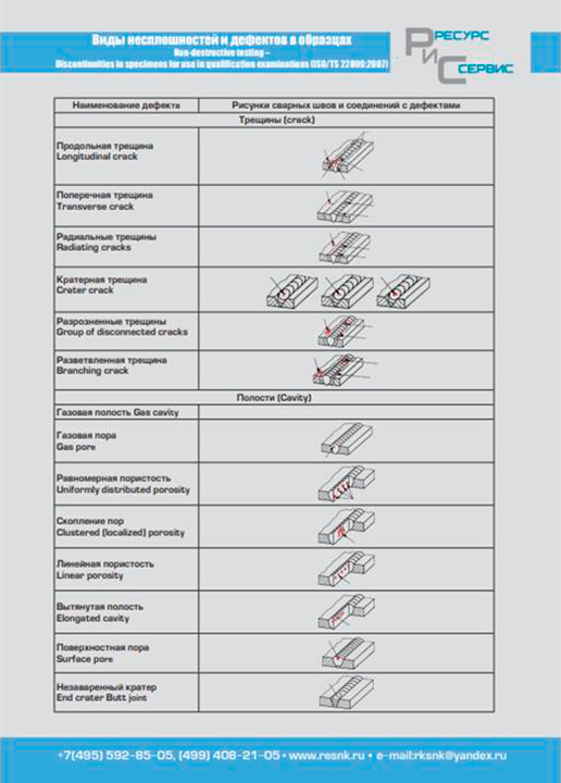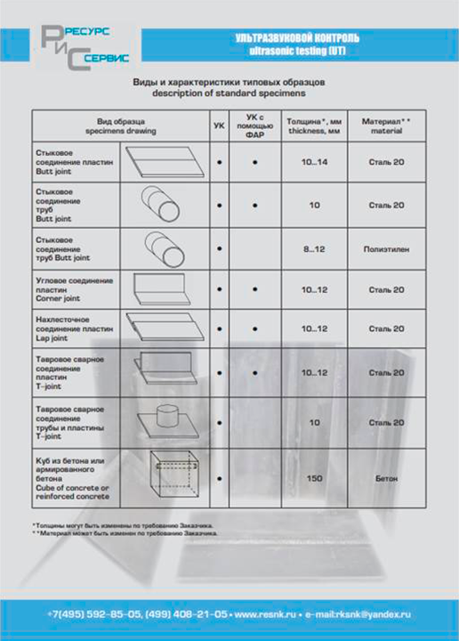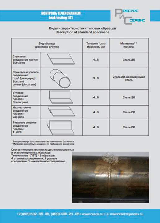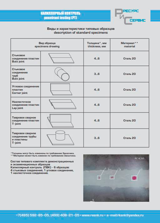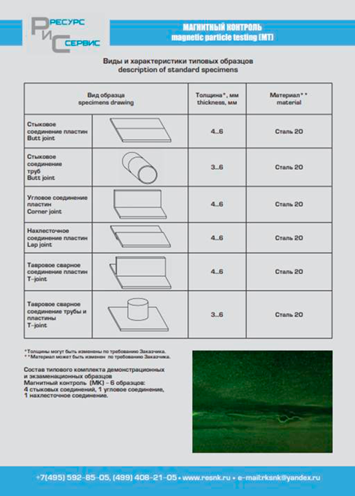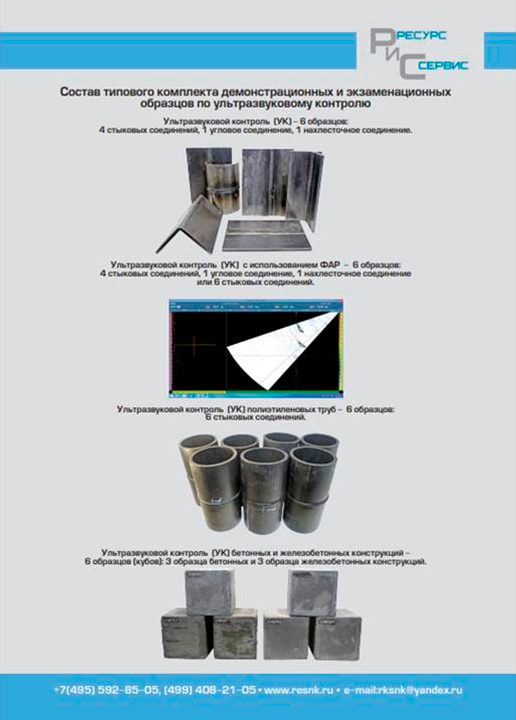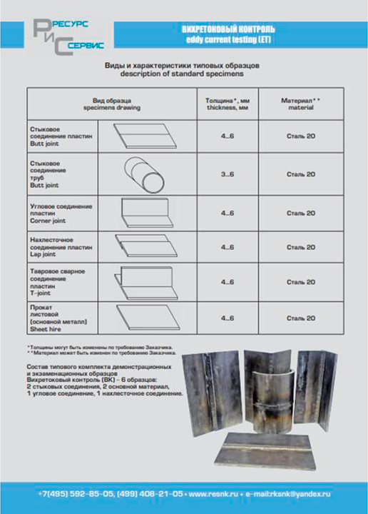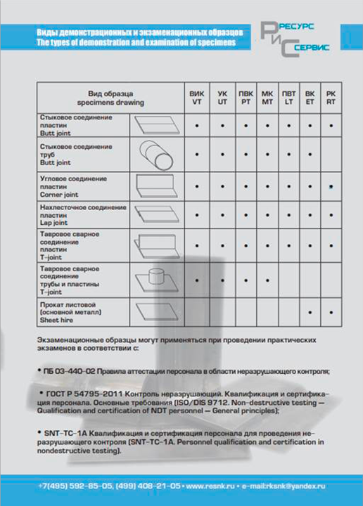 Экзаменационные образцы (ЭО) для проведения практических экзаменов при аттестации специалистов по неразрушающему контролю (в соответствии с нормами принятыми в Единой системе оценки соответствия и Европейскими стандартами) по следующим видам неразрушающего контроля: