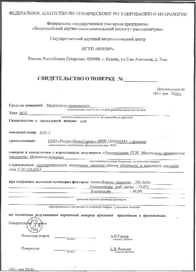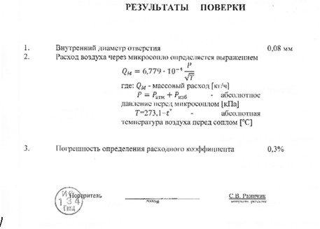 ФОРМА ТИПОВОЙ ПОВЕРКИ КРИТИЧЕСКОГО МИКРОСОПЛА КОНТРОЛЬНОЙ ТЕЧИ «КТ-2 АКУСТИКА»