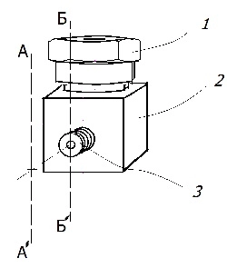 На Рис. А представлена контрольная течь (изометрия) для проверки нижнего порога чувствительности акустического газового метода, содержащая: 1 - прижимная гайка 2- контрольная течь в сборе, 3 - входной канал. Также на рис. представлены линии АА´ и ББ´, определяющие плоскость реза указанной контрольной течи, для пояснения работы устройства.