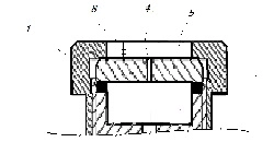 На Рис. В представлена часть контрольной течи для проверки нижнего порога чувствительности акустического газового способа, поясняющая работу устройства и содержащая: 1 - прижимная гайка, 4 - критическое калиброванное микро сопло, выполненное во вставке , 5 - выполненная в гайке калибровочная емкость, 8 - индикаторная линейка с рисками, обеспечивающими требуемый уровень наполнения контактных жидкостей для усиления акустического поля.